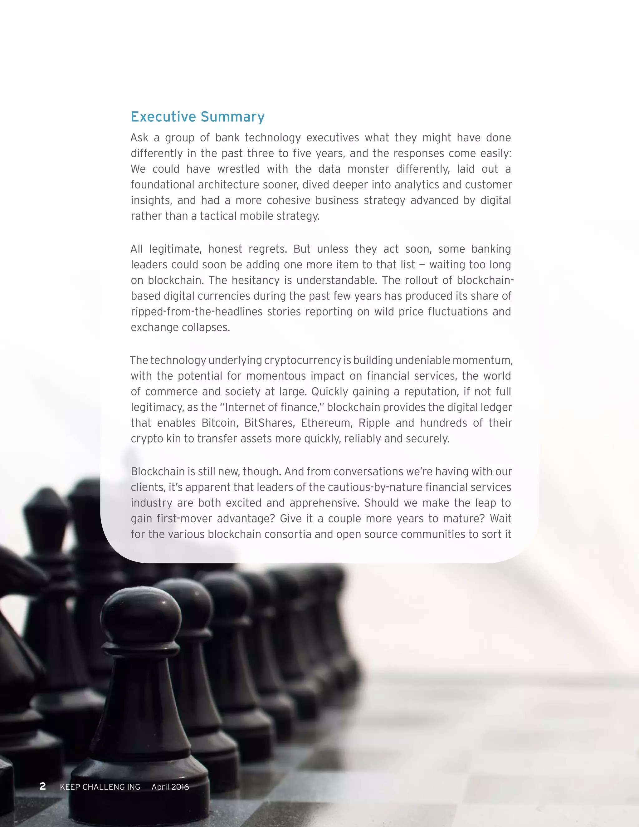 The document explores the importance and potential of blockchain technology in the banking sector, emphasizing the need for banks to adopt it proactively to gain a competitive edge. It highlights blockchain's benefits, such as enhanced security, cost reduction, and transparency, while addressing concerns about its maturity and implementation. The authors suggest that banks begin experimenting with blockchain through targeted pilot projects to better understand its applications and advantages.