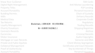 該文檔介紹了遠時數位科技股份有限公司及其對區塊鏈技術的探討,包括比特幣的價值、去中心化資料庫和智能合約在多個領域的應用。文中還提到了一些參考資料和鏈接以便深入了解這些概念。總結了區塊鏈的潛力和對未來社會的影響。