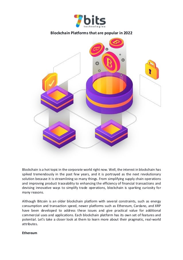 The document discusses the increasing popularity of blockchain platforms in 2022, highlighting their potential to streamline operations across various industries. It examines notable platforms like Ethereum, Polkadot, and Solana, each offering distinct features and advantages, such as smart contracts and improved interoperability. As the blockchain industry evolves rapidly, businesses are encouraged to innovate and leverage the technology to gain a competitive edge.