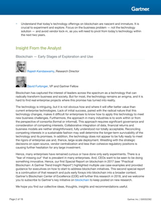 The Gartner trend insight report highlights blockchain's potential to transform business but notes limited short-term evidence of successful implementations. While interest in blockchain persists, enterprises struggle to identify clear business value and often apply it to improve current processes rather than pursue radical innovations. Future growth is expected, with forecasts suggesting blockchain could add over $3 trillion in business value by 2030, but significant challenges remain before widespread adoption.