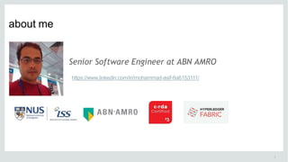 This document outlines a comprehensive roadmap for deploying blockchain solutions on Azure, specifically focusing on Hyperledger technologies. It covers various parts including architecture, deployment, and workflow integration, with emphasis on Hyperledger Composer for simplifying application development. Key concepts are explained such as roles within a blockchain network, transaction processing, access control, and the development of business applications.