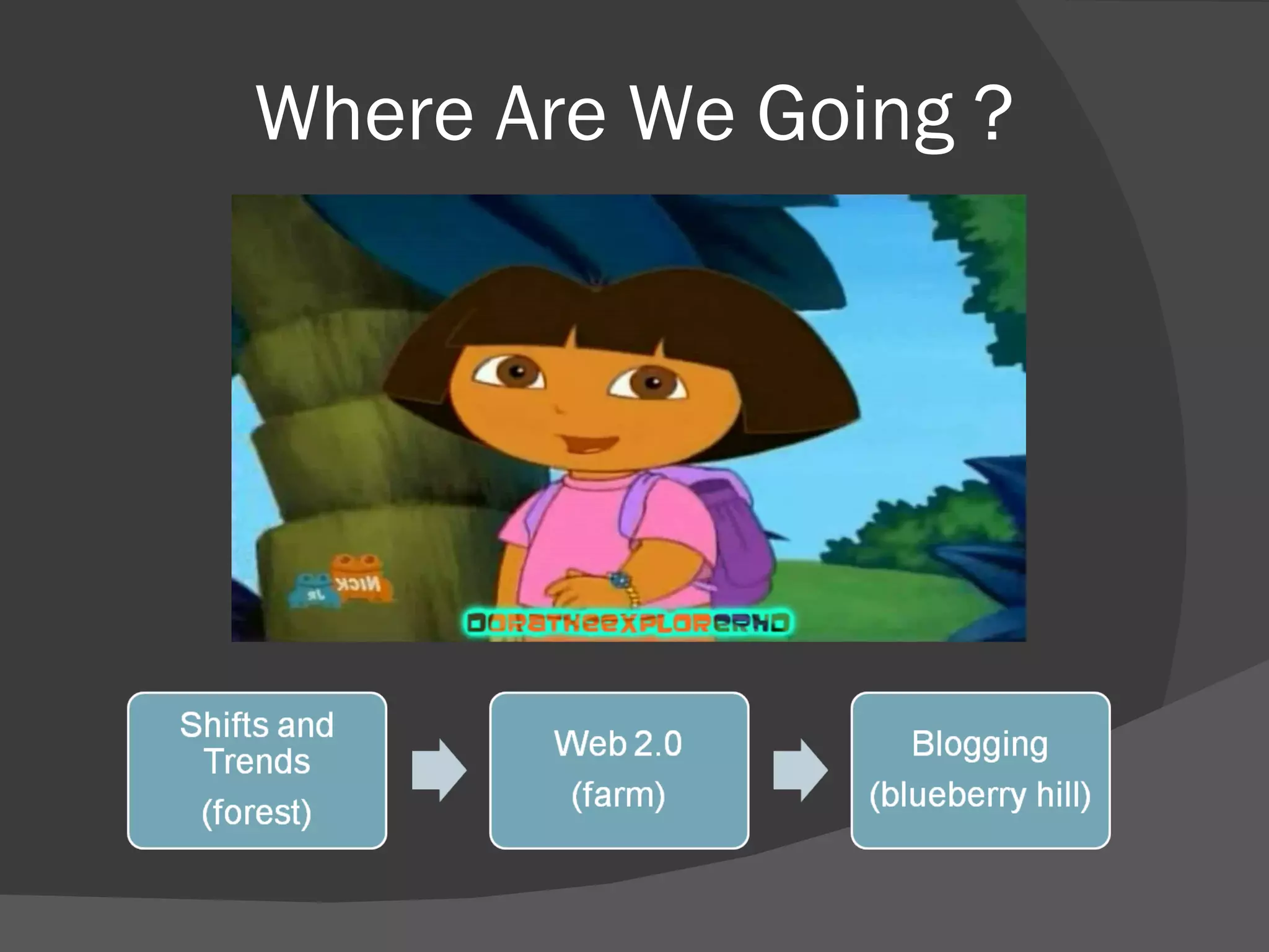 This document discusses trends in technology and education, including the rise of Web 2.0 technologies like blogging and social media. It notes that these technologies have shifted power from institutions to individuals, enabling collaboration and participation on a global scale. In education, it argues this shift calls for more student-centered, collaborative learning environments that leverage Web 2.0 tools, as students are already using these tools outside of school.