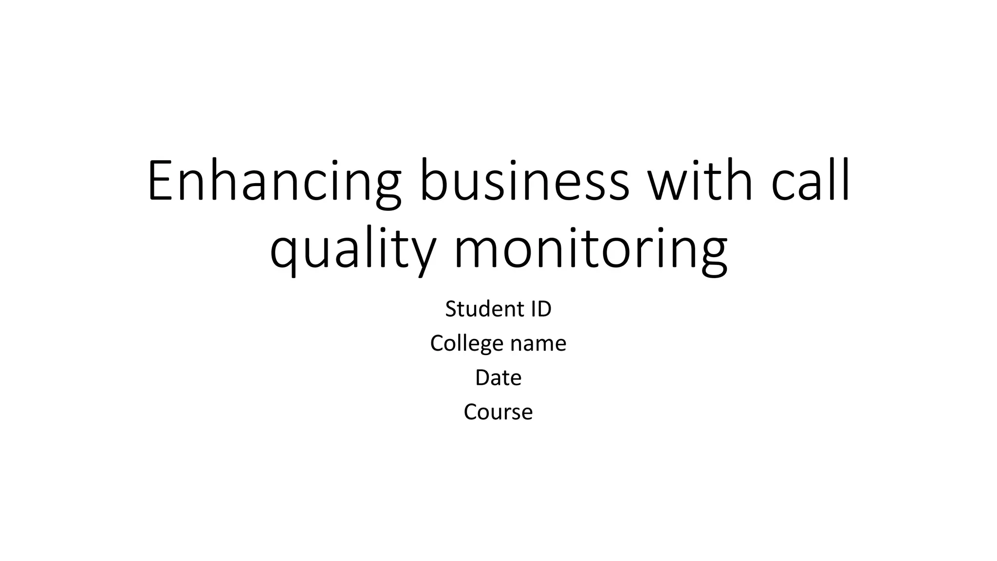 Call quality monitoring is the process of evaluating call quality to meet customer needs and requirements. It is important for analyzing customer preferences, experiences, and behaviors. Quality monitoring objectives include integrating AI analytics and improving the listening process. Call centers should use advanced software rather than excel to analyze performance data and make strategic decisions. Methods to improve include aligning calls with technologies like CTI and speech analytics, and using speech analytics to understand customer sentiment. Performance management is also key and involves monitoring quality, providing feedback, and addressing issues through innovative training. The presentation emphasizes the importance of quality assurance, illustrates insights from performance management tools, and frames speech analytics as effective for improving performance.