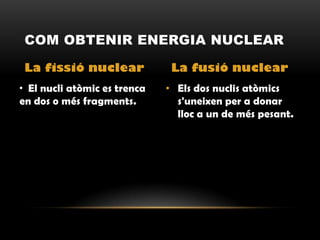 · El nucli atòmic es trenca • Els dos nuclis atòmics