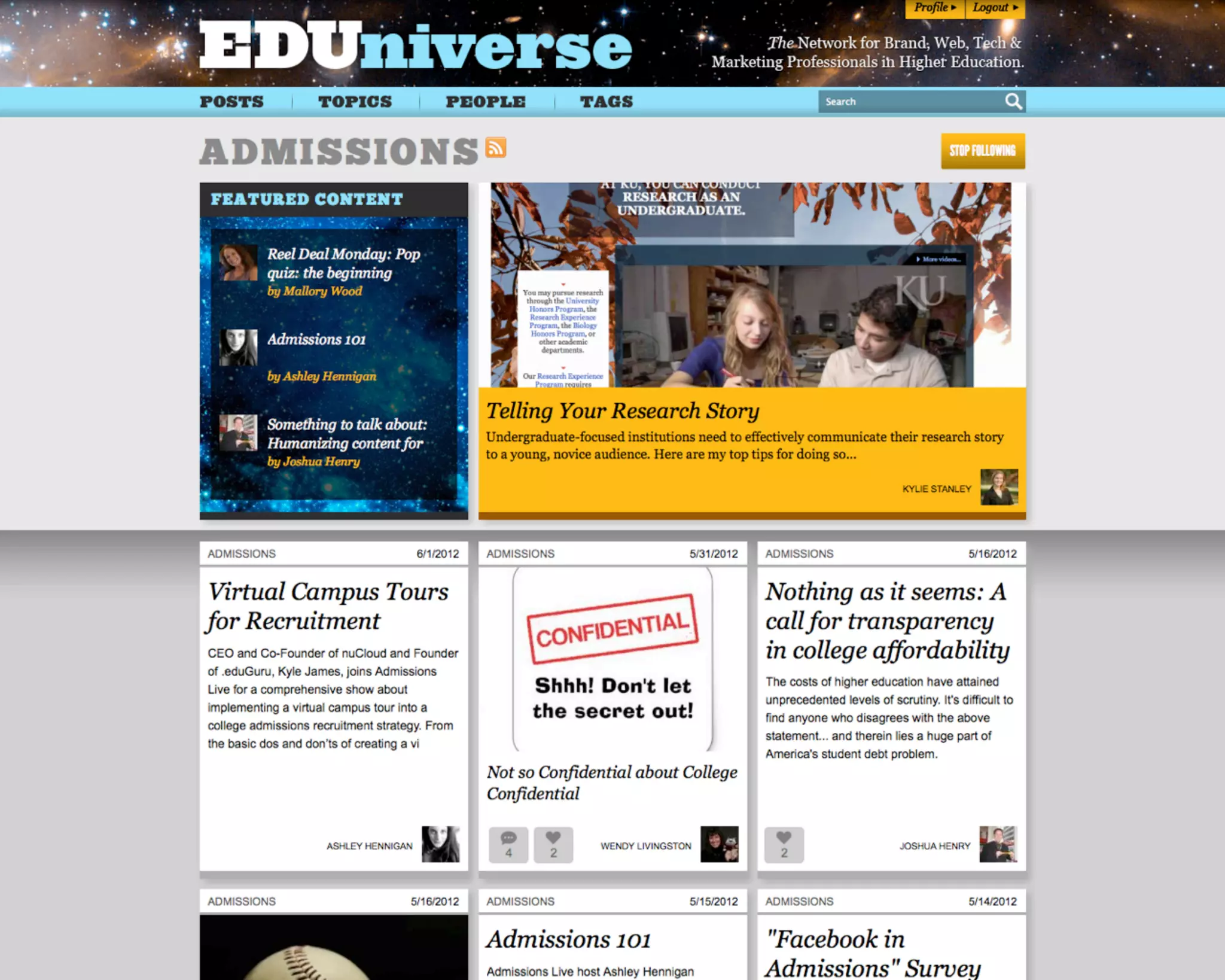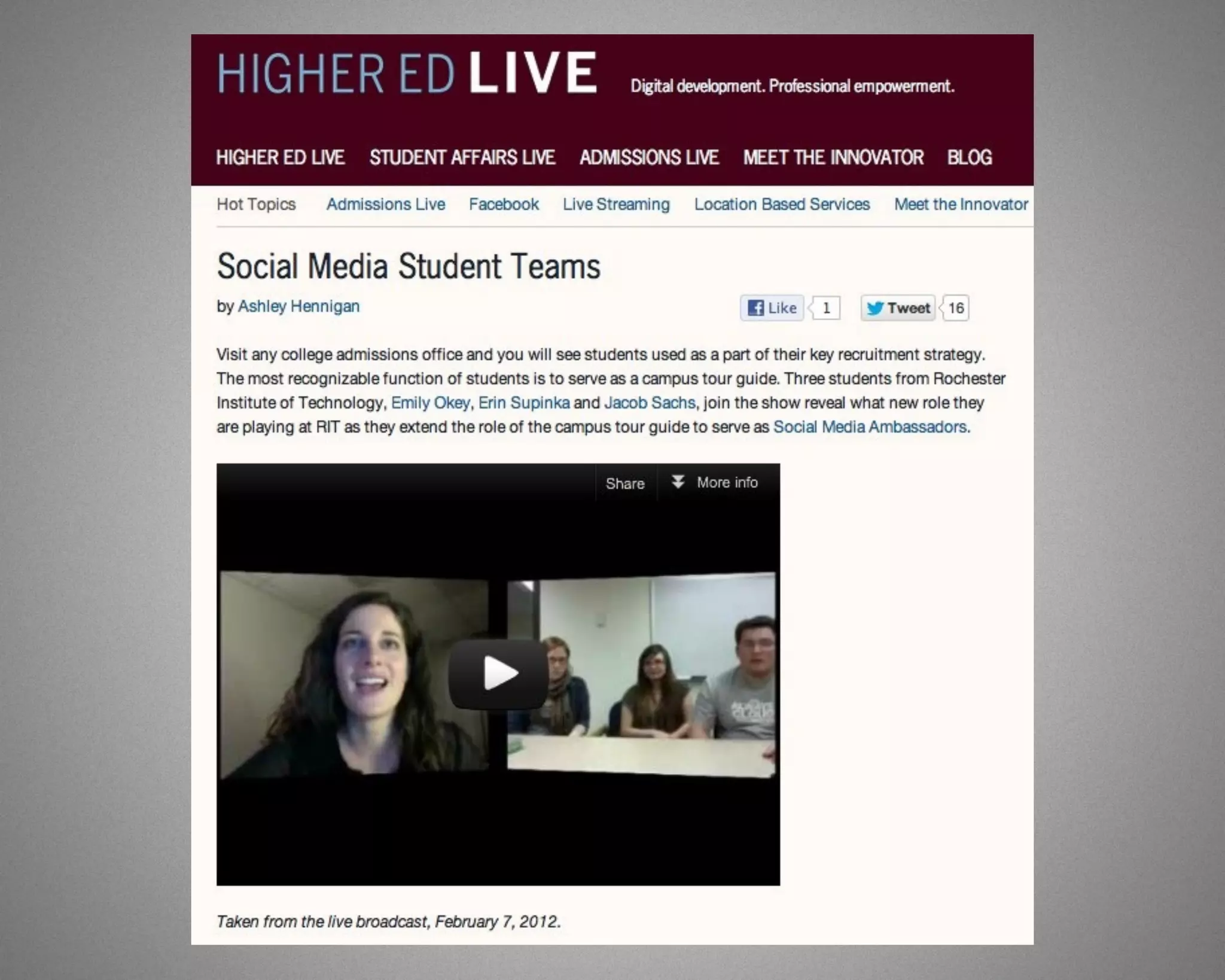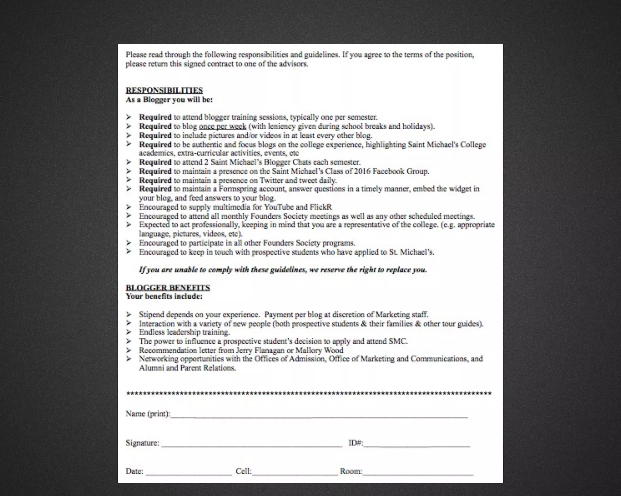 The document discusses the importance of using social media in undergraduate admissions to build relationships, foster community, and encourage advocacy. It emphasizes setting SMART goals for social media engagement, such as increasing Facebook interactions with prospective students. The document also highlights the advantages of using student bloggers and establishing clear contracts for responsibilities and benefits.