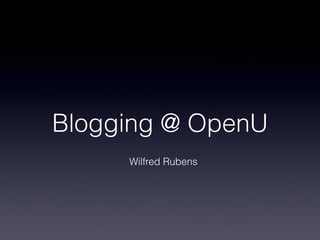 The document discusses the benefits of blogging at OpenU, an online university. Some key benefits mentioned are learning, networking, reputation building, and profit opportunities through new students, projects, and consultancy. Specific benefits of blogging at OpenU include transparency, disseminating work, boosting reputation of the university and individual. Tips provided for effective blogging include regular publishing, focusing on quality over quantity, and using features like pictures and bullet points. Twitter is also discussed as a tool that can complement blogging for notifications, questions, and impressions.
