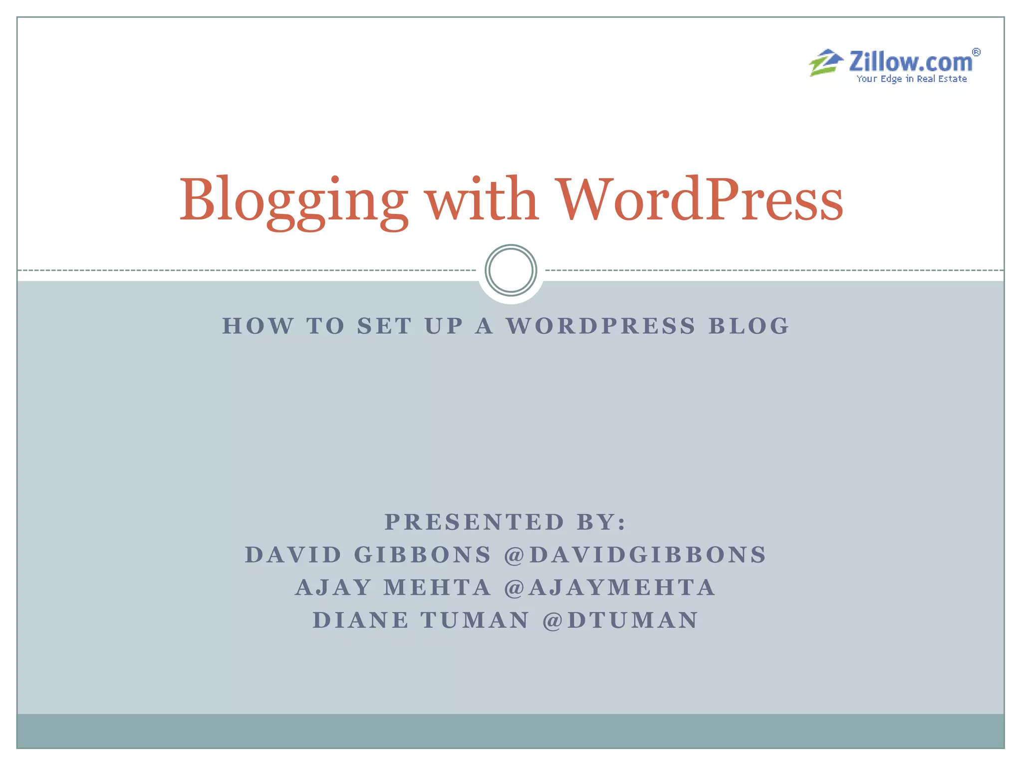 This document provides instructions for setting up a WordPress blog. It discusses why blogs are a good option for professionals, noting that search engines value blogs for their unique, fresh, and organized content. WordPress is recommended because it is free, has a large developer community creating plugins and themes, and has easy publishing tools. The document then walks through the steps to set up a WordPress blog using WordPress.com for a free hosted option or WordPress.org which requires installing the software on a hosting provider. Finally, it provides tips for writing blog content, including focusing on first-person experiences, responding to news, creating educational posts, and tracking analytics.