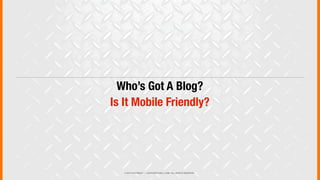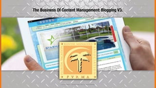 The document discusses the importance of blogging and effective content management strategies for engaging audiences across multiple platforms and devices. It highlights the need for diversified content that resonates with different demographics and encourages storytelling, guest contributions, and interactive experiences. Additionally, it emphasizes the necessity of being mobile-friendly and utilizing analytics to measure content effectiveness.