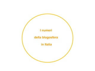 Nel 2008, circa 3,4 milioni di italiani scrivono blog e 8,1 milioni li leggono regolarmente. Si stima che 10 milioni di italiani accedano a contenuti online, con circa 3 milioni che pubblicano attivamente. La blogosfera italiana ha una mortalità significativa, con il 25-30% dei blog non aggiornati da più di tre mesi.