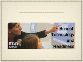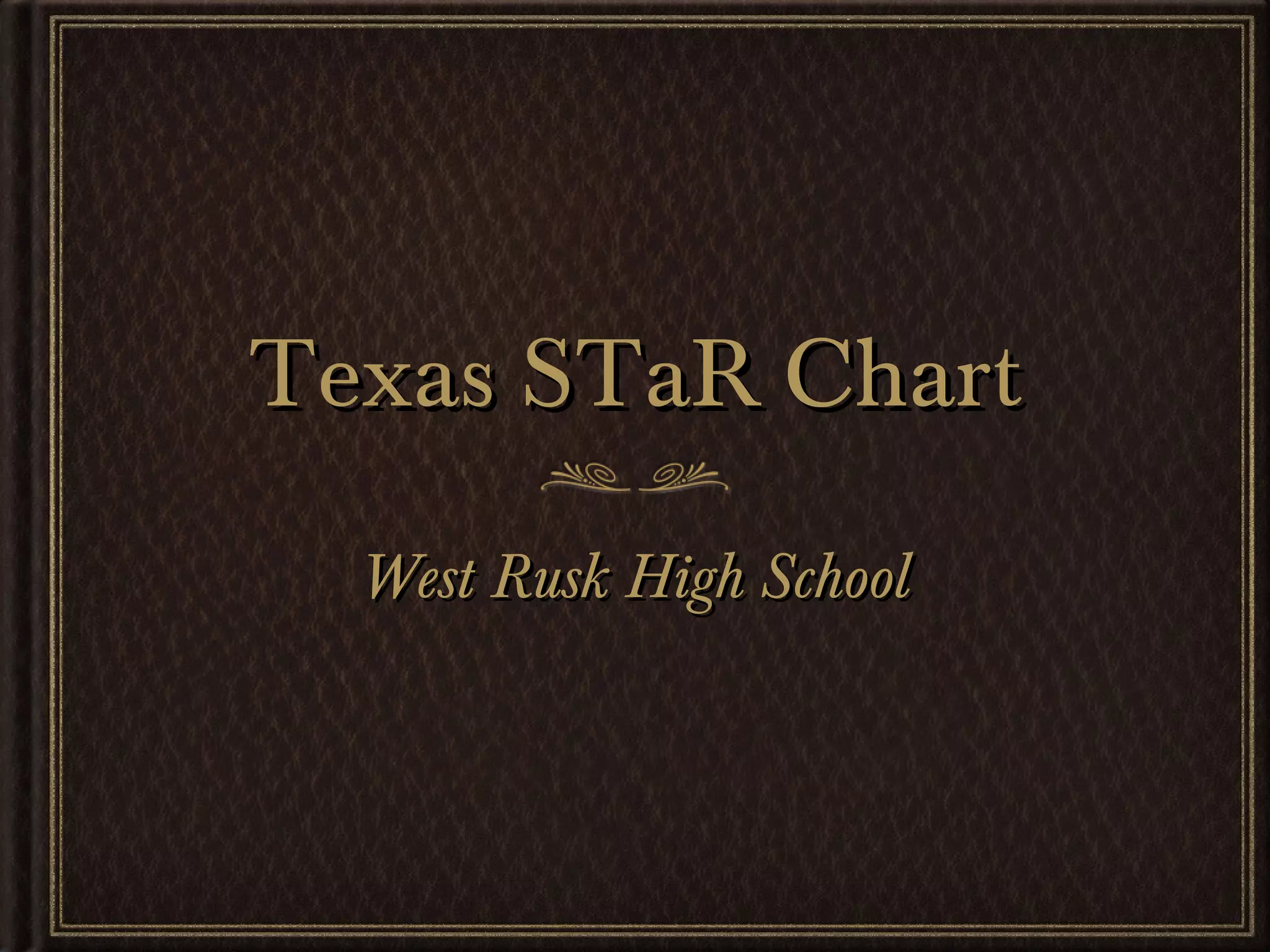 The document summarizes the Texas STaR Chart, which measures a school's technology integration efforts. It discusses the four key areas measured - Teaching and Learning, Educational Preparation and Development, Leadership/Administration/Support, and Infrastructure. For the 2010-2011 school year, West Rusk High School received an "Advanced" rating in Teaching and Learning and Infrastructure, a "Developing" rating in Educational Preparation and Development, and an "Advanced" rating in Leadership/Administration/Support. All schools are expected to achieve the highest "Target Tech" rating by 2020 according to Texas' Vision 2020 goals.