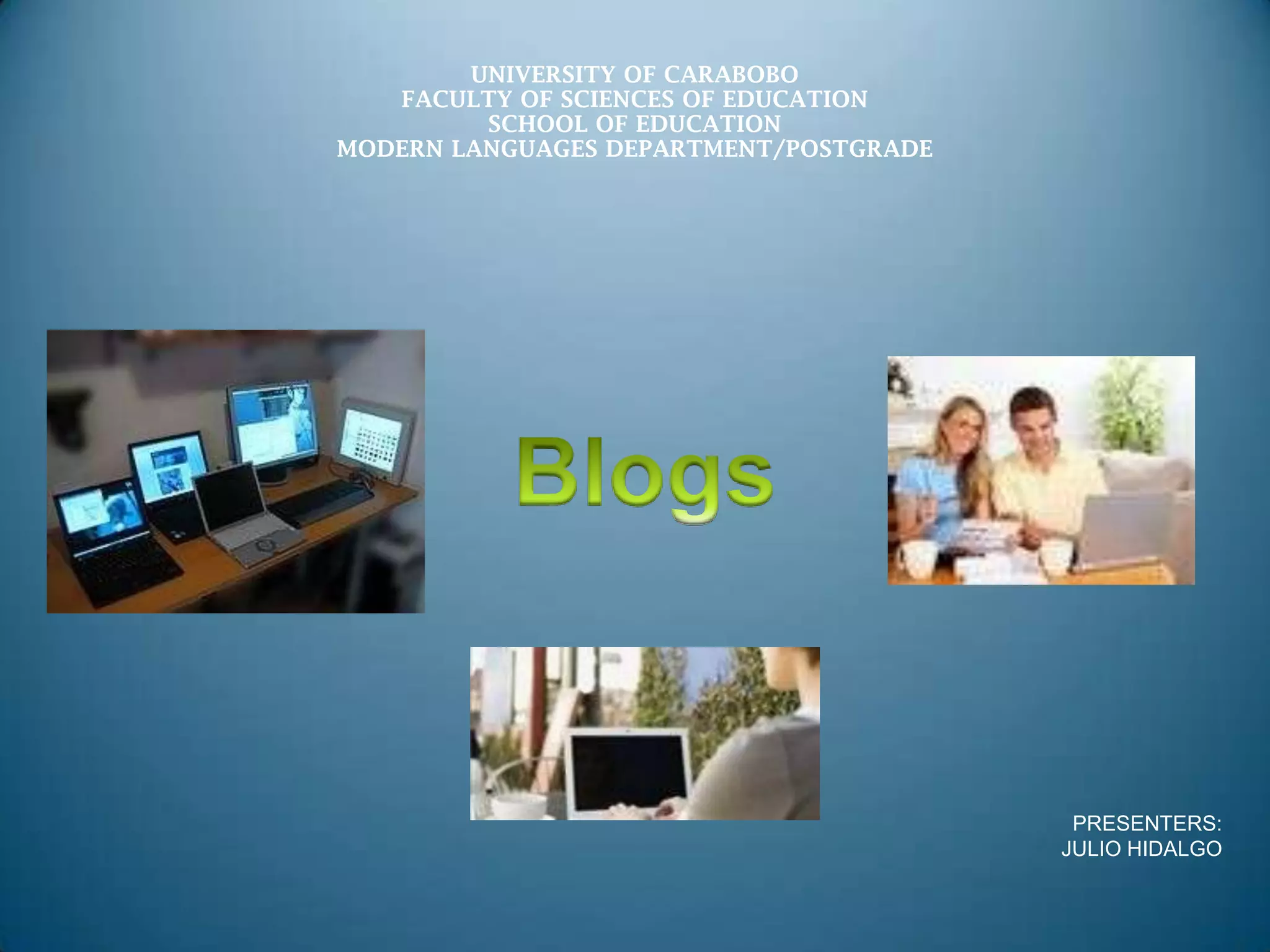 The document discusses the concept of blogs as online journals, detailing the process of starting one and its various benefits, particularly in educational contexts. It highlights how blogging can enhance writing skills, foster participation, and serve as effective forums for collaboration and discussion among students. However, it also notes potential drawbacks, such as information limitations and the necessity of technological access.