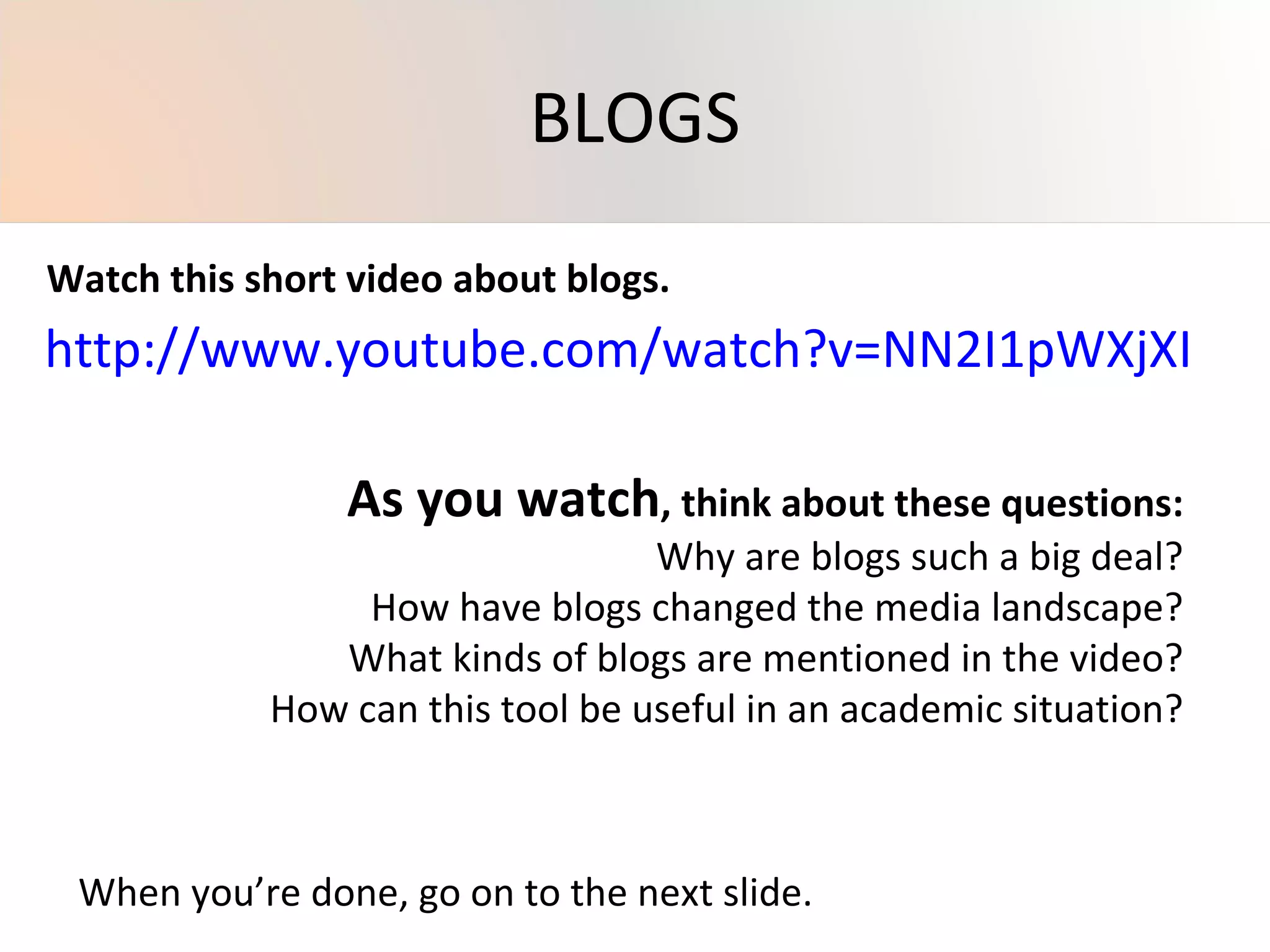 The document discusses blogs and their use in academic settings. It notes that blogs have changed media by allowing anyone to publish content and share different voices on topics. Blogs can be used for assignments and have advantages over traditional writing like allowing comments and lasting beyond a class. Writing for a blog may require additional organization but can incorporate multimedia. Academic integrity still applies when blogging and sources must be cited.