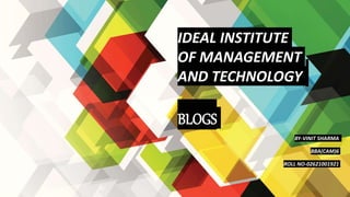 The document provides an overview of blogs, including their definition, types, advantages, and disadvantages. It describes blogs as online diaries that can cover a range of topics, and discusses how they can serve individuals, businesses, and communities. Additionally, it highlights the importance of maintaining a blog and offers a brief guide on how to start one.