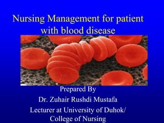 1. The document discusses various blood diseases including different types of anemia (microcytic, macrocytic, normocytic), their causes, signs and symptoms, and treatment approaches.