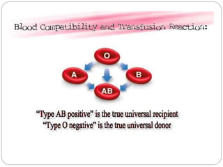 The document provides a comprehensive overview of the ABO and Rh blood group systems, detailing their discovery, characteristics, and clinical relevance. It outlines the phenotypes of the ABO groups, the presence of antigens, and rules regarding blood transfusions, including the significance of the Rh factor. Additionally, it touches on the unique characteristics of the Bombay blood group and the rarity of its occurrence.