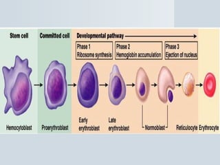 1. Blood is composed of plasma and cellular elements including red blood cells, white blood cells, and platelets. Red blood cells contain hemoglobin which gives blood its red color and allows it to carry oxygen.
