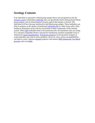 Blood type is determined by antigens on red blood cells and affects blood transfusion and pregnancy. There are 30 recognized blood group systems including ABO and RhESUS. ABO types are A, B, AB, and O based on carbohydrate antigens. RhESUS refers to the presence of the RhD antigen. Blood types must be compatible to prevent immune reaction during transfusion. Incompatible blood can cause hemolytic disease in newborns if a pregnant woman is sensitized to antigens of her fetus's blood.