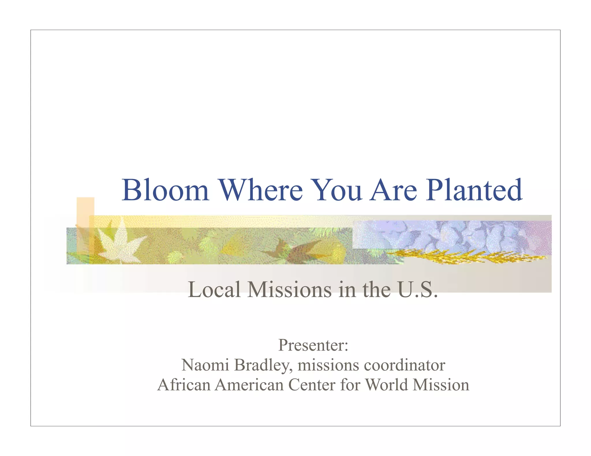 The document discusses the importance of local missions based on examples from the early church. It encourages believers to work collaboratively by pooling resources and talents. Opportunities for local missions exist in serving those in need, preaching the gospel, and working together as the body of Christ without division. The needs in cities today are great but God has provided his people to meet those needs through cooperation rather than working alone.