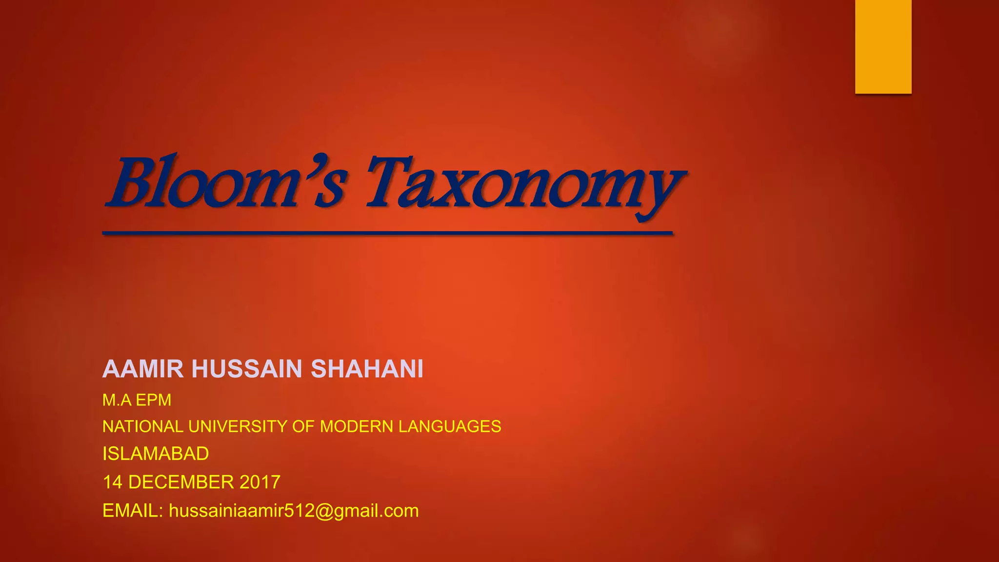 Bloom's Taxonomy, developed by Benjamin Bloom and others in 1956, is a classification system for educational objectives that helps define different levels of human cognition like thinking and understanding. It includes three domains: cognitive, affective, and psychomotor, each with distinct categories that guide educators in curriculum development and assessment. The revised taxonomy by Lorin Anderson in 2001 updated the cognitive domain's categories and emphasizes skills over content, serving as a foundational tool in educational philosophy and teaching methodologies.