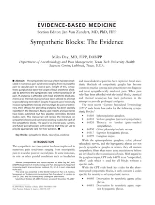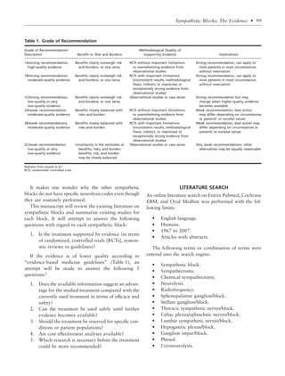 This document reviews the evidence for various sympathetic blocks based on a literature search. It finds: