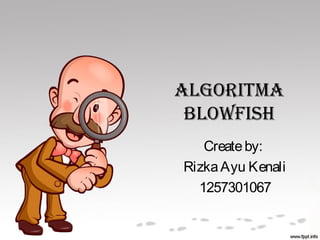 Algoritma Blowfish merupakan algoritma kunci simetri blok cipher yang dirancang untuk menggantikan DES. Blowfish menggunakan skema Feistel network dengan 16 putaran dan blok ukuran 64 bit dengan panjang kunci variabel antara 32-448 bit. Blowfish dianggap aman karena belum ditemukan kelemahan yang berarti dan pesan yang dienkripsinya sulit dibobol tanpa kunci.