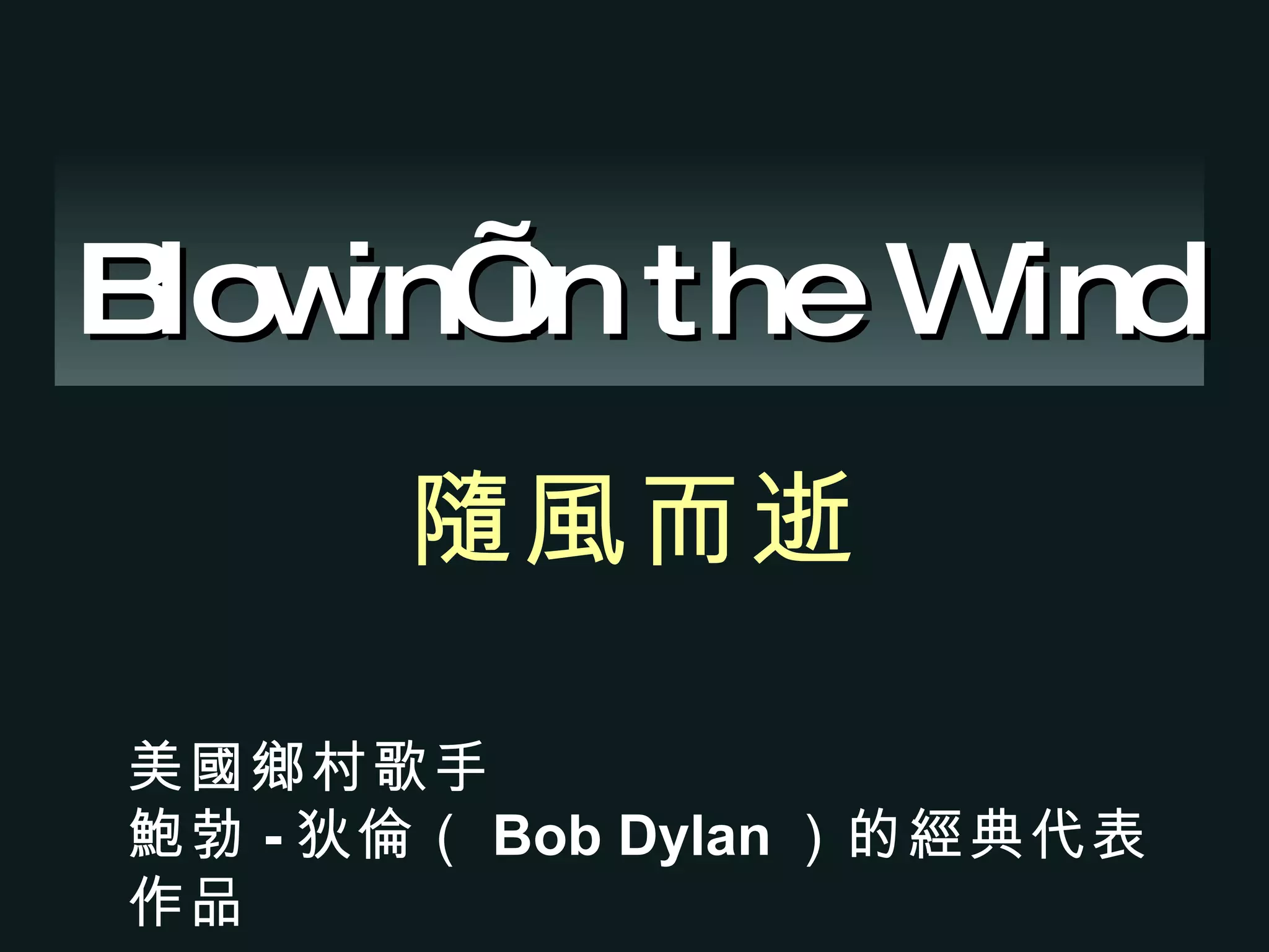 This document summarizes the lyrics to the classic Bob Dylan song "Blowin' in the Wind". The song poses a series of rhetorical questions about freedom and social change, asking "how many" of something must occur before a greater understanding or transformation takes place. Each verse ends by stating that "the answer is blowing in the wind", suggesting that the answers to these difficult questions are elusive and dependent on changing social conditions.