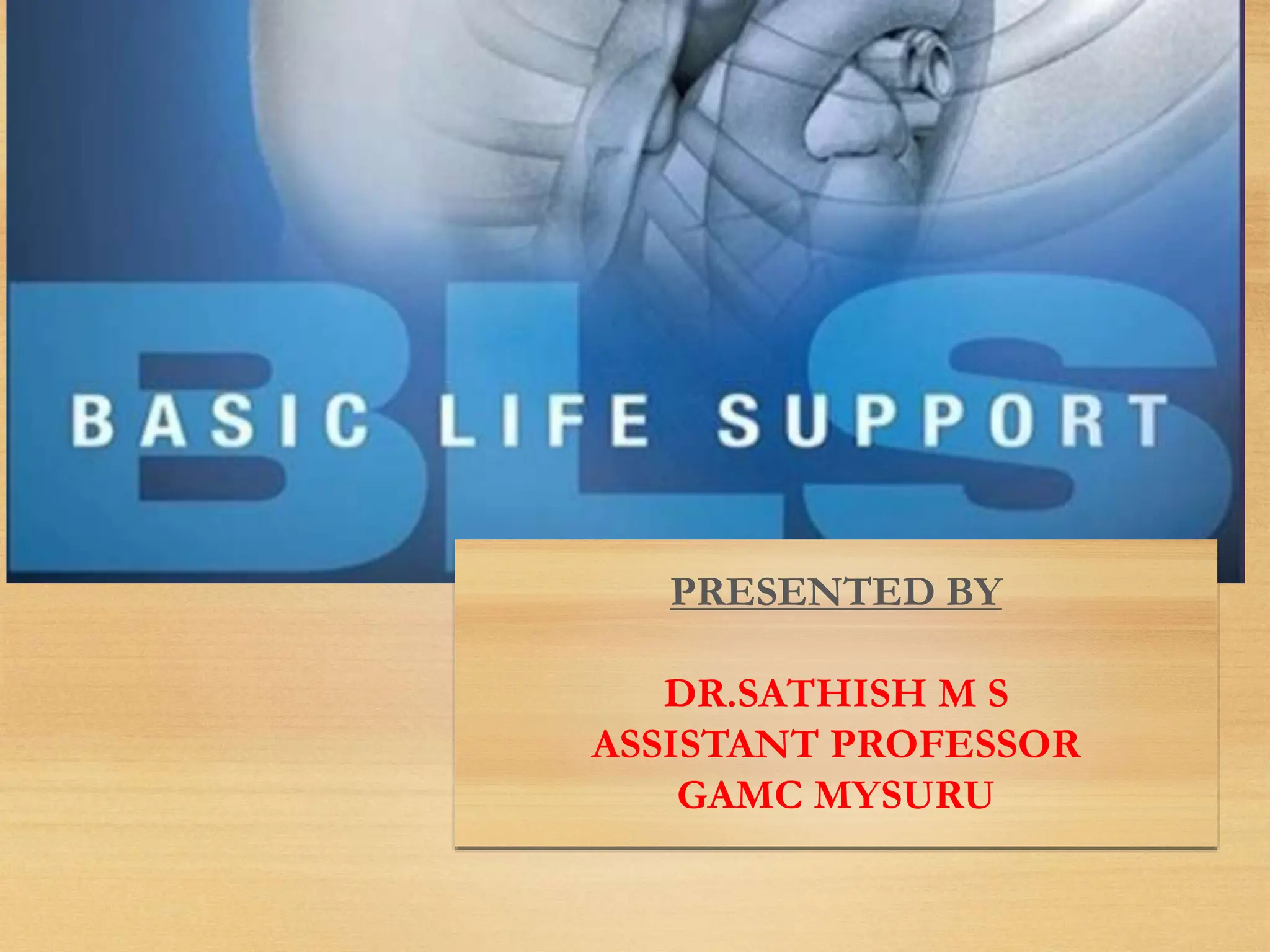 Basic Life Support (BLS) involves procedures like chest compressions and rescue breathing to restore oxygenated blood flow after cardiac or respiratory arrest until full medical care can be provided. BLS does not require drugs or specialized skills. It is aimed at maintaining circulation and oxygenation until definitive treatment is available. The CAB-D approach guides BLS, assessing for circulation, airway, breathing issues, and use of defibrillation if needed. High quality CPR involves 30 chest compressions followed by 2 rescue breaths at a rate of 100-120 compressions per minute. BLS plays a critical role in the "chain of survival" by providing oxygenated blood flow until emergency services can take over advanced life support measures.
