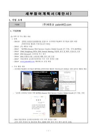 - 2014 TechCrunch Disrupt 샌프란시스코 행사 참가, patentKO 베타테스트 런칭 솔루션 검증