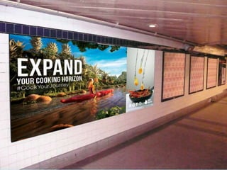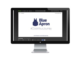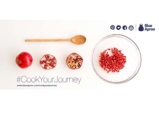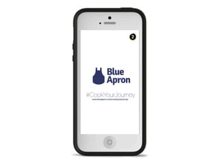This document discusses marketing Blue Apron meal kits to millennials. It summarizes millennial habits and goals around eating, including wanting unique experiences, healthy meals, and adventure. It outlines Blue Apron's offerings and competitive advantages over other meal kit companies in terms of price, variety of meal options, and repetition. The marketing strategy is to position Blue Apron kits as providing experiential cooking adventures that millennials can share on social media from the comfort of their own kitchen.