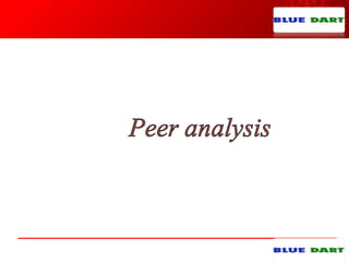 Blue Dart is a leading logistics company in India. It has two main competitive advantages - its strong human resource practices and economic prospects within the growing logistics market. Blue Dart ranked 12th in India's best places to work in 2012. It has a large market share and focuses on customer service, availability, performance and reliability. Blue Dart owns aircraft and has a wide domestic network, technology investments, and financial credibility as core competencies. It faces competition from other domestic and global players but has achieved various awards for its innovative HR practices.