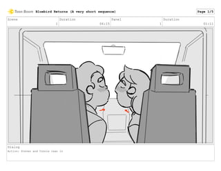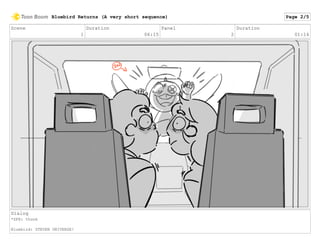 Steven and Connie are leaning in close together when a bluebird suddenly lands on Steven's head, causing them both to scream. As Steven tries to introduce the bluebird, Connie panics and tells it to get off. The bluebird then wipes across the windshield, obscuring their view.