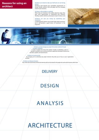 This document discusses the benefits of using an architect for business integration and enterprise architecture solutions. It states that architects can: