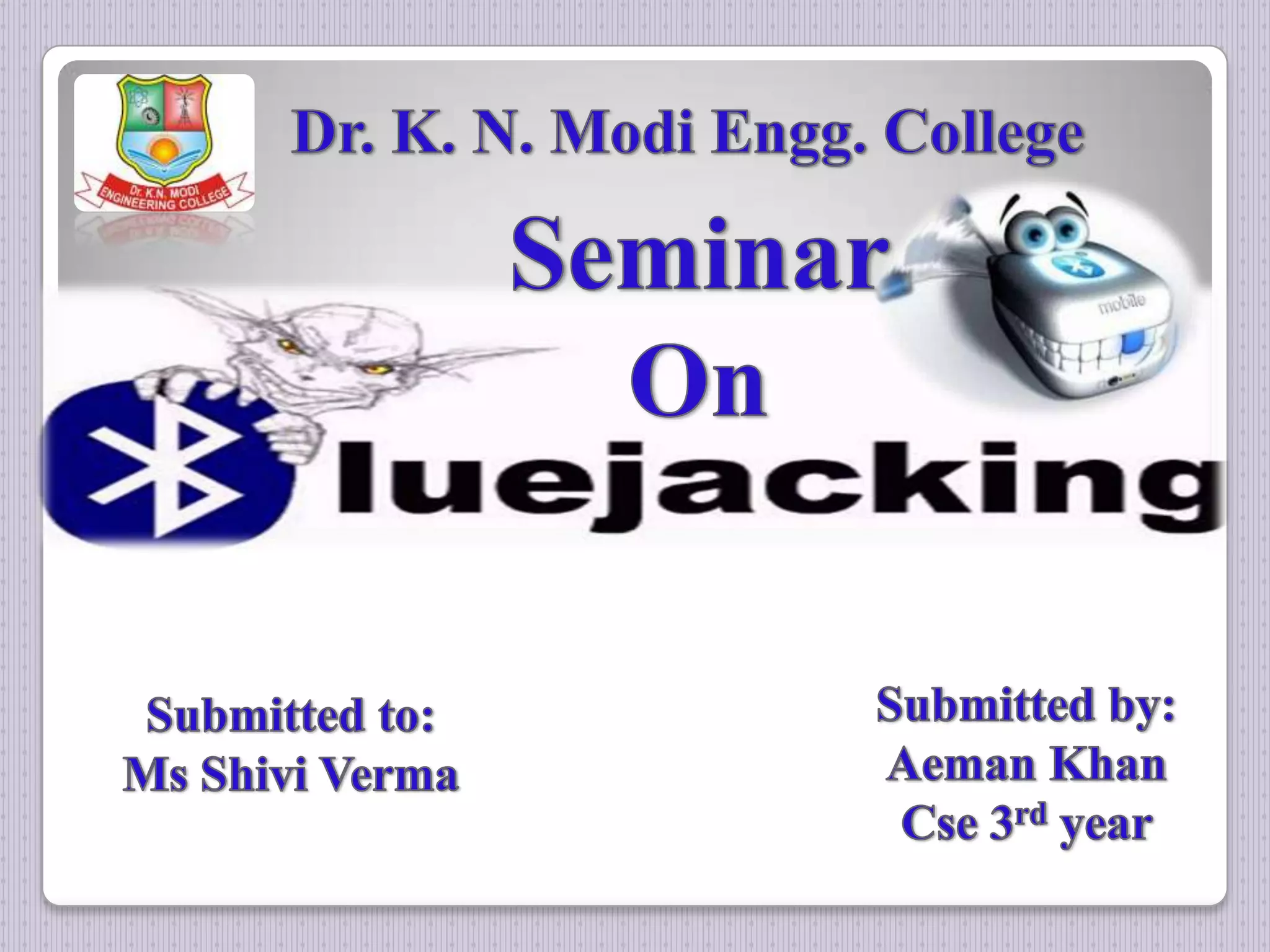 This document discusses bluejacking, which is sending unsolicited messages to Bluetooth devices. It provides an introduction to bluejacking and Bluetooth technology. The history of bluejacking is explained, originating from a comment on a mobile forum. Steps for bluejacking using mobile phones and computers are outlined. The document also lists software tools for bluejacking and common locations where it occurs. Potential harm from bluejacking and prevention methods are briefly mentioned before concluding.
