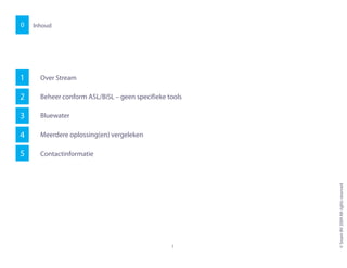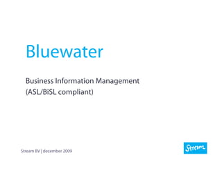Bluewater offers a comprehensive SaaS-based solution to support Business Information Management Processes. The standard processes are based on the latest versions of ASL and BiSL, but can be tailored to your specific needs. Other than ITIL, ASL and BiSL are business centric and focus on the interaction with the community of business users.