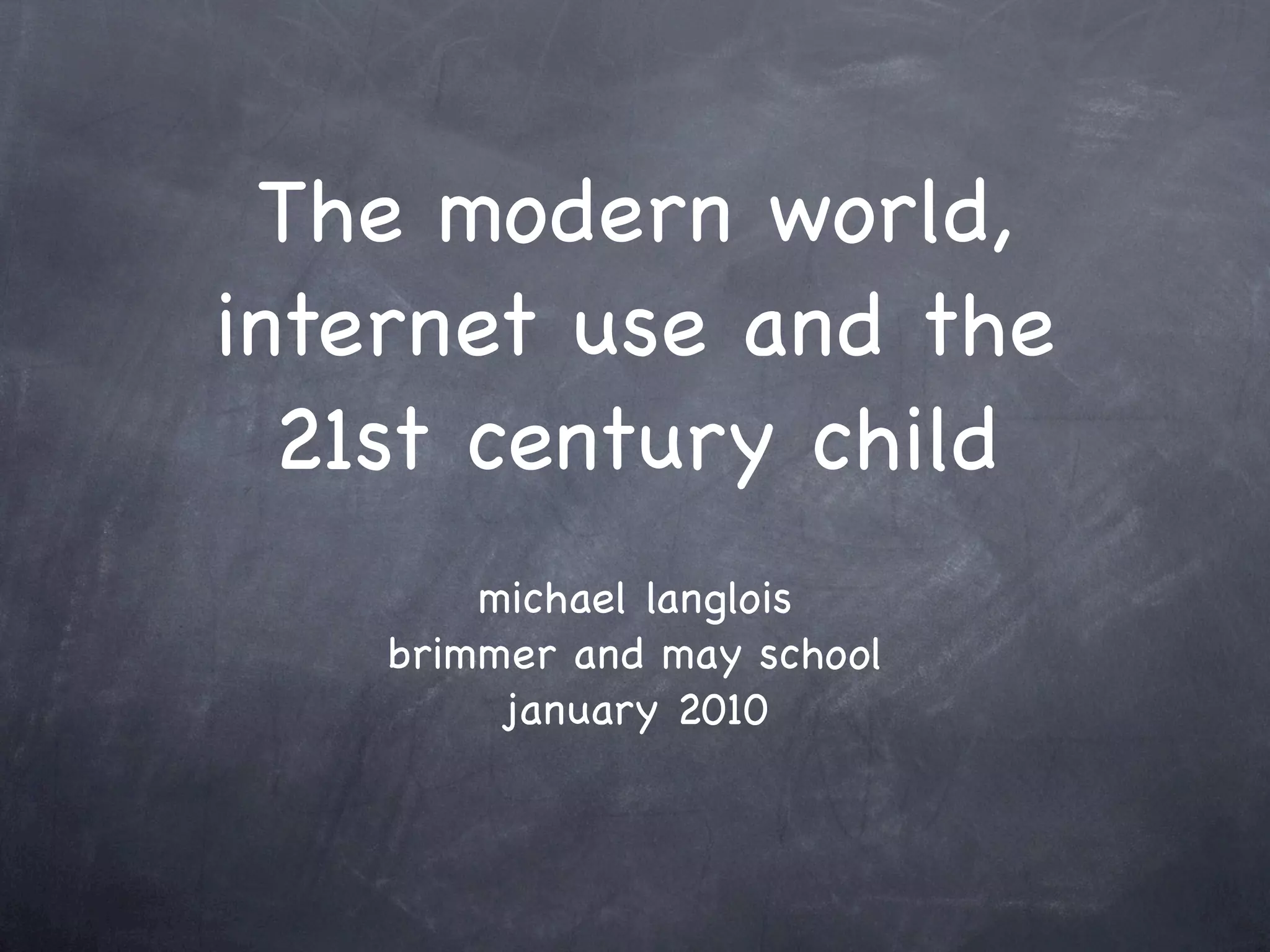 This document discusses the internet habits of 21st century children. It notes that children are now "internet citizens" who are immersed in technology from a young age. They exhibit traits like immediacy, technical literacy, exposure to global knowledge, and tolerance for diversity. The document outlines popular internet activities for children like blogs, wikis, podcasts, social networking, online chatting, and warns of potential online dangers like cyberbullying, inappropriate content, and interacting with strangers. It provides suggestions for good parental practices like internet supervision, monitoring messages and spending time online together.