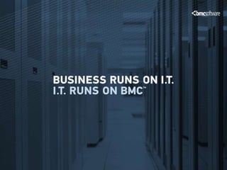 BMC Software isleading the evolution of IT Gartner, Inc., "Market Share: IT Operations Management Software, Worldwide, 2007", R. Millman, June 2008 Gartner, Inc., "Magic Quadrant for the IT Service Desk", D. Coyle, K. Brittain, November 2008 Gartner, Inc., “Magic Quadrant for IT Project and Portfolio Management”, M. Light, D. Stang, June 2008 Gartner, Inc., “Magic Quadrant for IT Event Correlation and Analysis, 2007”, D. Williams, D. Curtis, W. Cappelli, December 2007 Gartner, Inc., “Magic Quadrant for Job Scheduling, 2006”, M. Govekar, February 2007 Forrester Research, Inc., “The Forrester Wave™: Service Desk Management Tools, Q2 2008”, C. Gliedman, April 2008 Forrester Research, Inc., “The Forrester Wave™: Data Center Automation, Q2 2008”, E. Hubbert, April 2008 Forrester Research, Inc., “The Forrester Wave™: Business Service Management, Q1 2007”, P. O’Neill and E. Hubbert, March 2007 Forrester Research, Inc., “The Forrester Wave™: IT Asset Management, Q3 2006”, P. O’Neill, August 2006 Forrester Research, Inc., “The Forrester Wave™: Application Mapping For The CMDB, Q1 2006”, J. Garbani and T. Mendel, February 2006 IDC, “Worldwide Database Development and Management Tools 2007 Vendor Shares”, C. Olofson, October 2008 IDC, “Worldwide Problem Management Software 2007 Vendor Shares”, F. Broussard, September 2008 IDC, “Worldwide Performance and Availability Management Software 2007 Vendor Shares”, T. Grieser, October 2008 † The Magic Quadrant is copyrighted 2007 by Gartner, Inc. and is reused with permission. The Magic Quadrant is a graphical representation of a marketplace at and for a specific time period. It depicts Gartner's analysis of how certain vendors measure against criteria for that marketplace, as defined by Gartner. Gartner does not endorse any vendor, product or service depicted in the Magic Quadrant, and does not advise technology users to select only those vendors placed in the "Leaders" quadrant. The Magic Quadrant is intended solely as a research tool, and is not meant to be a specific guide to action. Gartner disclaims all warranties, express or implied, with respect to this research, including any warranties of merchantability or fitness for a particular purpose. Analyst Firm Market BMC Leadership Status IT Service Desk and Help Desk 1,2 † 2007 Market Share Leader – 1 st Positioned in Leaders Quadrant DBMS Management 1 2007 Market Share Leader – 1 st IT Project and Portfolio Management 3† Positioned in Visionaries Quadrant IT Event Correlation and Analysis 4† Positioned in Leaders Quadrant Job Scheduling 5† Positioned in Leaders Quadrant Service Desk Management Tools 6 Named a Leader for Both Large and Small Enterprise Service Desk Tools, Forrester Wave™ Q2 '08 Data Center Automation 7 Named a Leader in Data Center Automation, Forrester Wave™ Q2 '08 Business Service Management 8 Named a Leader in Business Service Management, Forrester Wave™ Q1 '07 IT Asset Management 9 Named a Leader in IT Asset Management, Forrester Wave™ Q3 '06 Application Dependency Mapping Tools 10 Named a Leader in Application Mapping For the CMDB, Forrester Wave™ Q1 '06 Database Development & Management Tools 11 2007 Market Share Leader – 1 st Problem Management 12 2007 Market Share Leader – 1 st Performance Management 13 2007 Market Share Leader – 2 nd