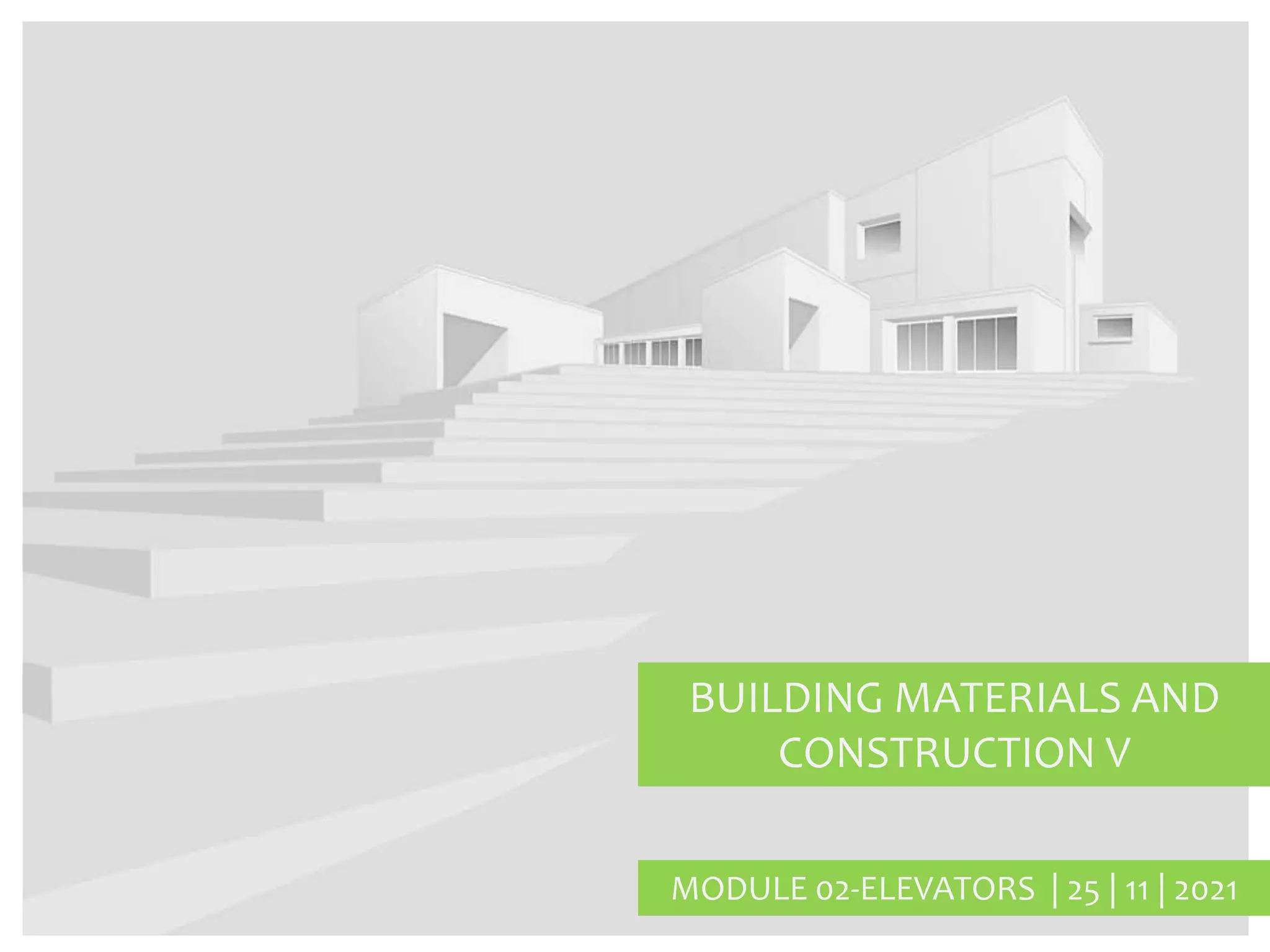 This document provides information about elevators, including their need, historical development, major components, types, mechanisms, controls, and details for accessibility. It discusses how elevators allow for tall buildings and transport goods and people between floors. Key developments include ancient lifting devices, early safety brakes, electric and hydraulic systems, and standards for speed and capacity. Elevator types include passenger, hospital, freight, automobile and more. Components, mechanisms for traction, hydraulic and roped systems, and safety controls are outlined. Accessibility requirements for physically challenged individuals are also reviewed.