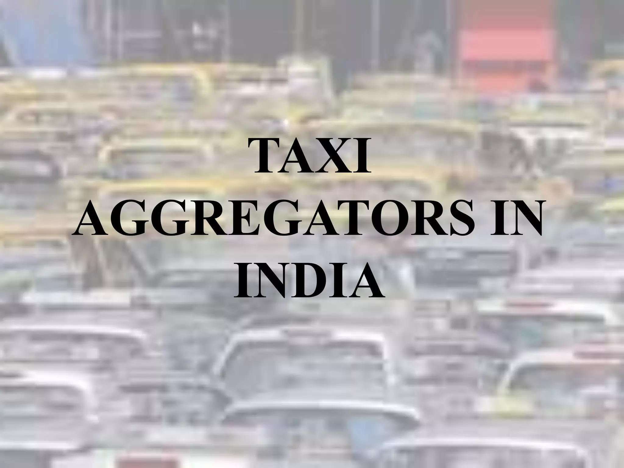 Ola is the largest taxi aggregator in India with 60% market share, followed by Meru with 16% and Uber with 5%. The document discusses the major players in India's taxi aggregation market including Ola, Uber, and Meru. It provides details on their founding, strategies, and regulatory challenges faced in India.