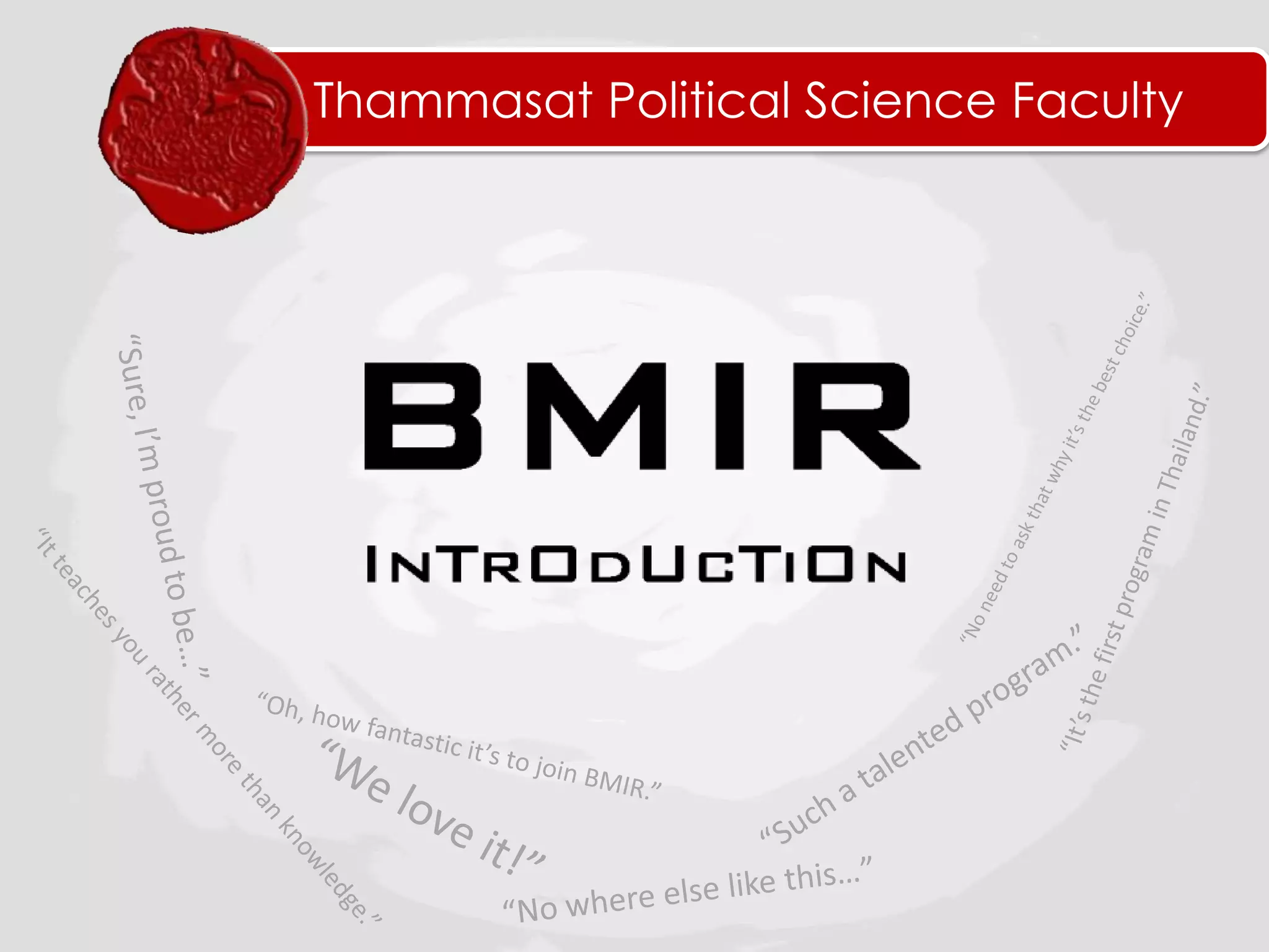 The document provides information about the Bachelor of Political Science and Master of International Relations (BMIR) program at Thammasat University in Thailand. The 5-year combined bachelor's and master's degree program aims to provide both academic knowledge and practical skills in political science, international relations, and public administration. The summary describes the program's objectives, degree requirements, sample curriculum, application process, and contact information.