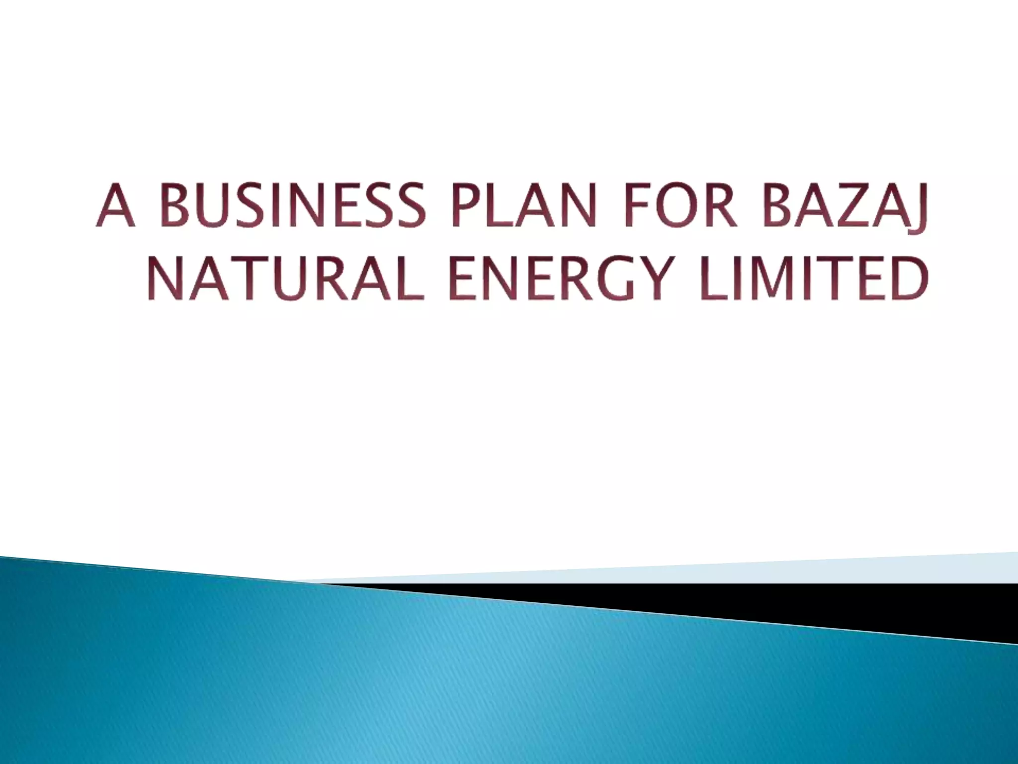 The document outlines the sections and components typically included in a business plan, such as objectives, executive summary, company overview, operations, marketing, and financial plans. It then provides examples of the content that may be included in each section for a proposed biofuel company called Bajaj Natural Energy Limited, including descriptions of the company's mission, location, management team, competitive advantages, target markets, and financial projections. The business plan aims to establish India's first biofuel production company to help reduce air pollution and dependence on petrol and diesel.
