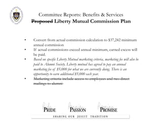 1) The Board of Governors meeting covered committee reports from the Nominating Committee, Regional Engagement Committee, Mentoring/Internship Committee, Young Alumni/Senior Engagement Committee, Benefits & Services Committee, and Affiliate updates.