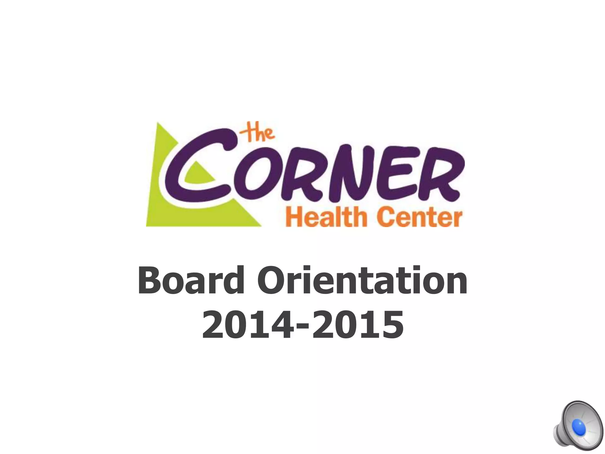 The Corner Health Center's mission is to provide primary health care and education to adolescents aged 12 to 21 regardless of income level. The board orientation document outlines the health center's mission, governance structure, 10 basic board responsibilities, strategic plan, and expectations for board members. Notably, the health center will now include four youth as full voting board members starting in September 2014 to give youth an equal role in decision making.