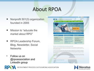 The document is a report presented by Mike Mayeux on essential statistics for recruiting leaders, emphasizing the importance of recruiting for organizational success and cost management. It discusses the impacts of turnover costs, speed of hire, candidate quality, and the need for strong talent acquisition strategies, while advocating for metrics to support recruiting objectives. Additionally, it offers guidelines for creating effective talent briefs and insights into partnership with recruiting process outsourcing providers.