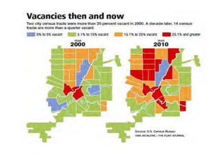 The document discusses complex social issues in Battle Creek and Flint, Michigan, emphasizing the need for innovative approaches to address intertwined problems like education, poverty, and violence. It critiques traditional programmatic solutions and advocates for social innovation, which seeks collaborative solutions that improve societal outcomes. The Community's Project 2020 aims to foster coalitions that engage stakeholders in a holistic, asset-based approach to community development, enhancing communication and addressing crime and social disorder.