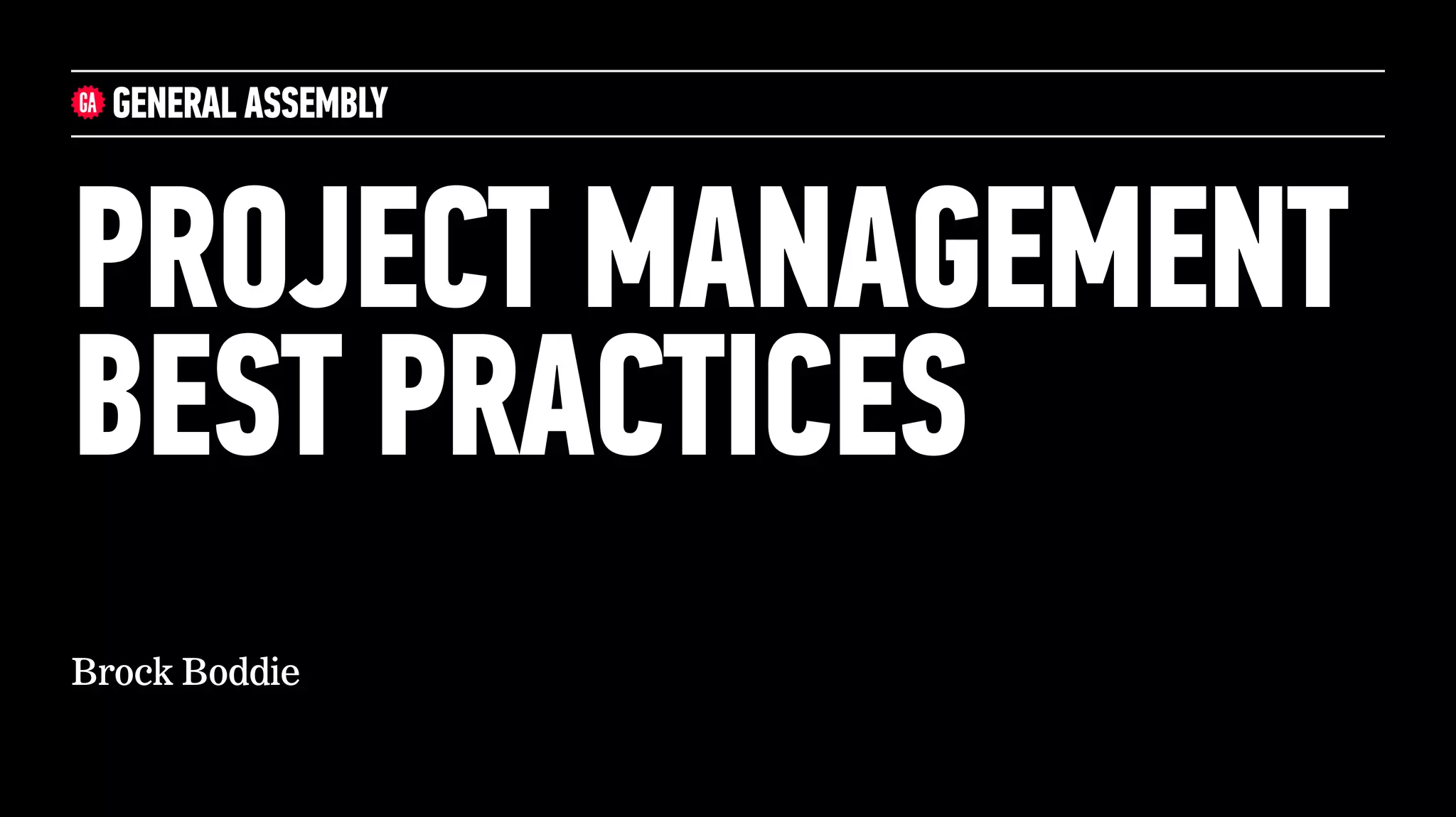 The document outlines project management best practices as presented by Brock Boddie, covering essential elements such as scope, people, timeline, and budget. It emphasizes the importance of effective communication, team management, and maintaining a structured approach throughout the project lifecycle. Additionally, it discusses strategies for client management, decision-making, and fostering positive relationships within the team.