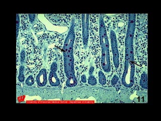 Simple columnar epithelium, เยื่อบุผิวในลำไส้ Simple columnar epithelium เซลล์มีขนาดสูงมากกว่ากว้าง มักอยู่ตามส่วนของร่างกายที่ทำการสร้าง secretion หรือสำหรับดูดของบางอย่าง เช่น อาหารที่ย่อยแล้ว เช่น เยื่อบุผิวข้างในลำไส้ เป็นต้น - 14.