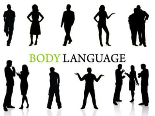 This document summarizes a presentation on body language given by 7 people. It discusses how body language is a form of non-verbal communication through gestures and movements. It describes the different types of gestures like emphatic, suggestive, and prompting gestures. It also outlines how facial expressions, eye contact, hand gestures, arm positions, and posture can provide cues to a person's emotions, attitudes, openness, defensiveness, nervousness and more. Mastering body language can help with intuition and understanding how others are feeling beyond what is said verbally.