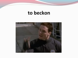 This document lists various nonverbal gestures and body language cues including ways to greet or acknowledge others such as waving, nodding, shaking hands, patting someone on the back, as well as means of expression like shrugging, frowning, gesturing, and making eye contact. It also includes positions like crossing legs, folding arms, raising a hand, leaning, and eye contact.