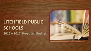 The proposed 2016-2017 budget for the Litchfield Public Schools seeks a $340,000 increase over the previous year's budget, representing a 2% rise. Key items in the proposed budget include replacing aging technology devices for middle school students, improving the school food services program, and expanding academic programming, such as introducing Spanish instruction in 4th grade. The budget aims to continue supporting students' individual needs through small class sizes and a variety of academic and extracurricular opportunities.