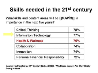 The document discusses the importance of information literacy in schools, highlighting the challenges faced by students in evaluating and managing information in the digital age. Studies point to a significant gap in students' ability to assess web content objectively, which contributes to issues like information overload. It argues for integrating information literacy into education to enable students to effectively navigate and utilize information for learning and future career success.